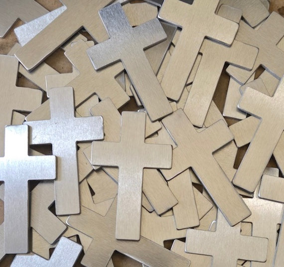 These beautiful cross hand stamping blanks are measure 1 1/4" x 2" and come in 18 gauge metal. Use the drop down menu to make your metal selection.